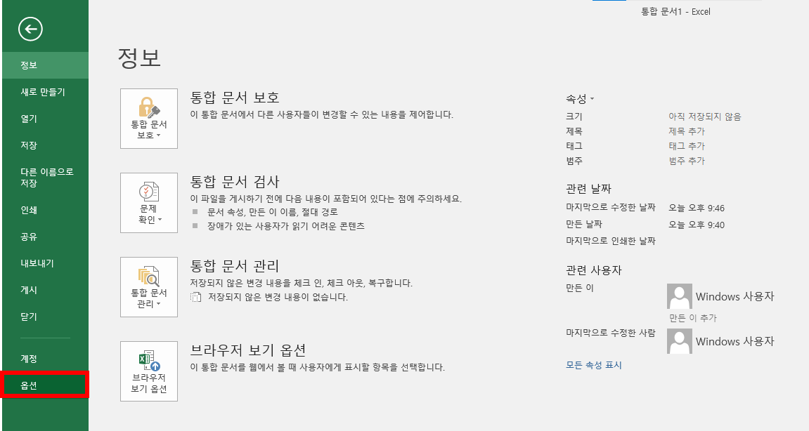 옵션을 선택합니다.