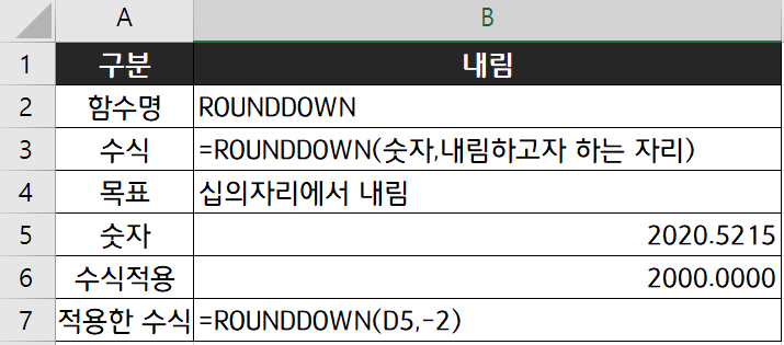 내림은 내림하고자 하는 자리 그대로 표시하시면 됩니다.