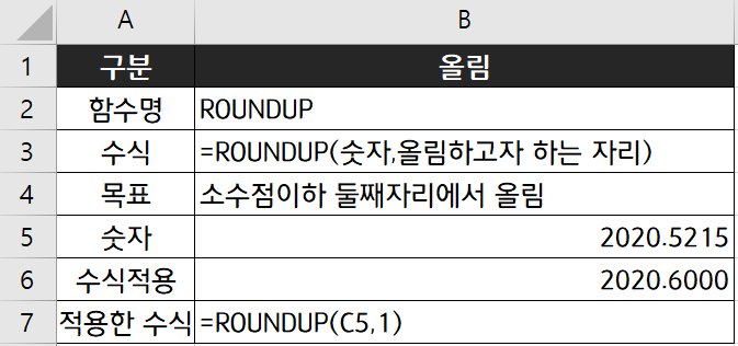 반올림/올림 같은 경우는 '원하는 자리수 - 1'로 작성하시면 됩니다.